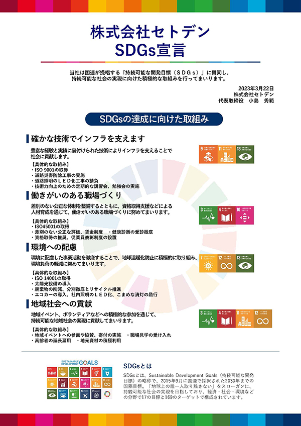 私たちは、電気工事を通じて地域の暮らしを支えるとともに、持続可能な社会の実現を目指し、SDGs(持続可能な開発目標)に取り組んでいます。